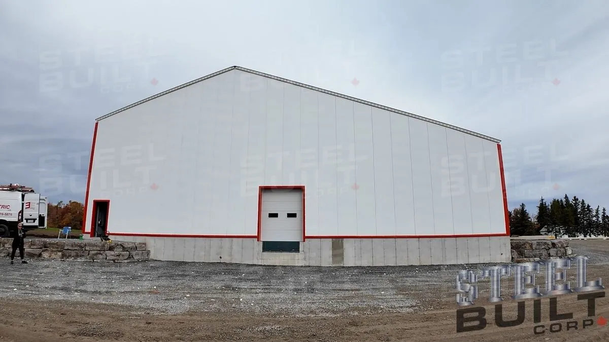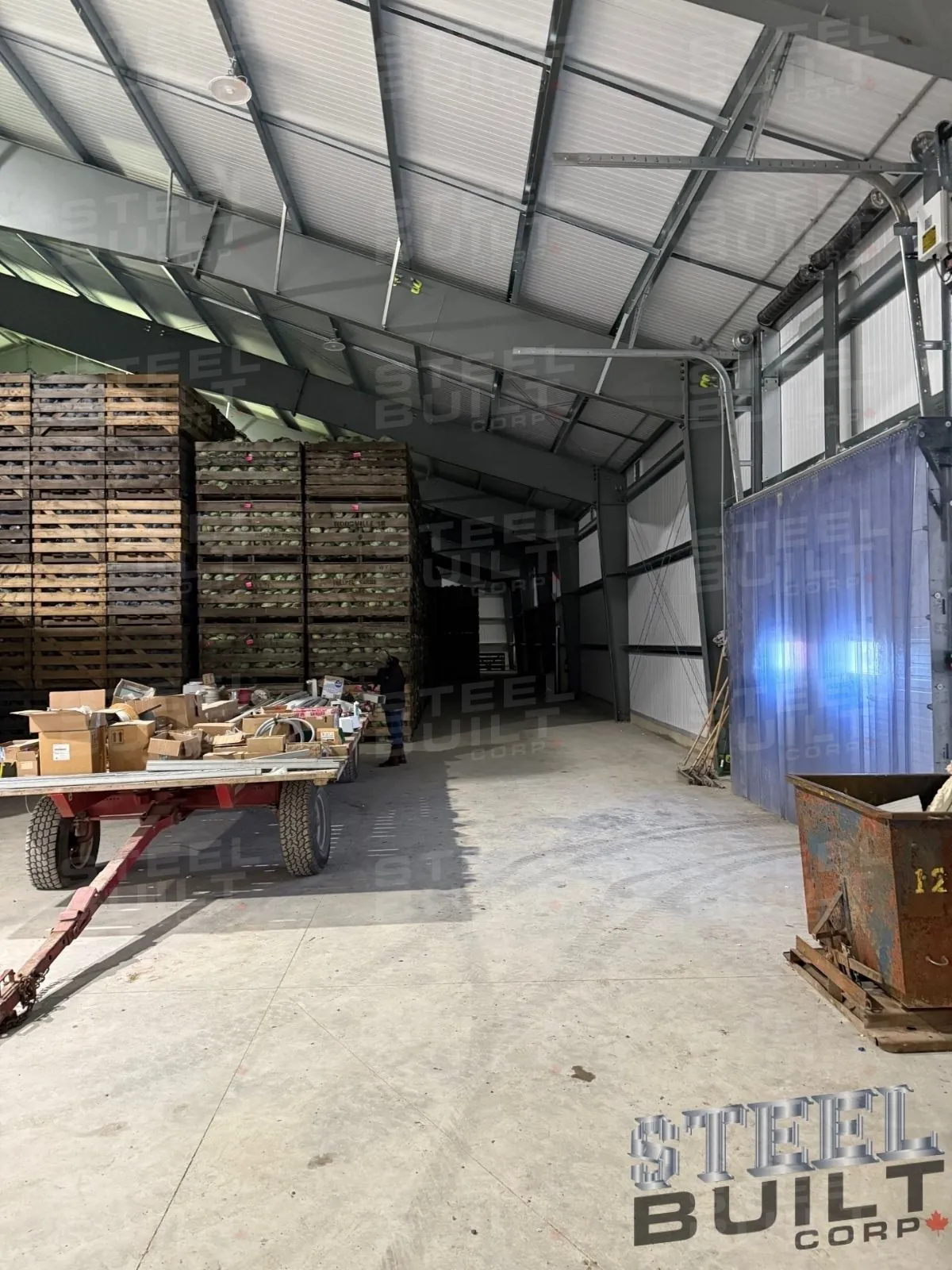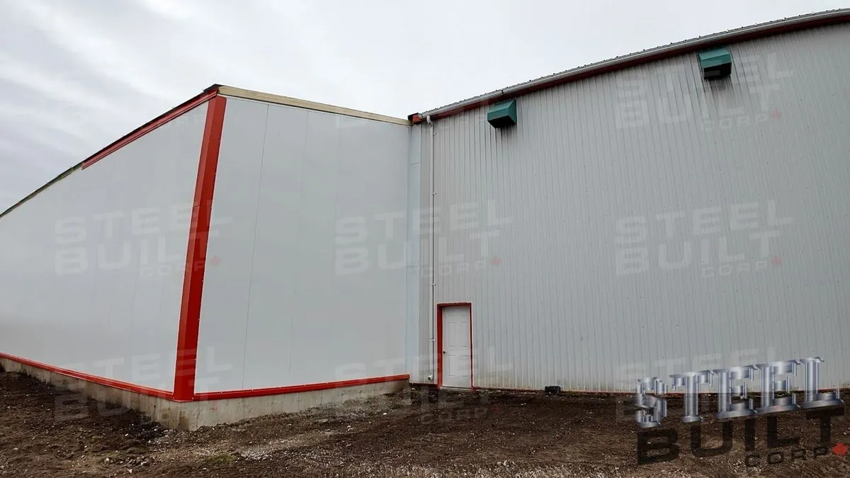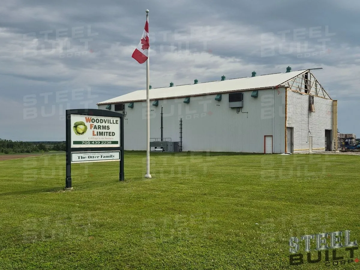 80x180x12/14 Agricultural Building in Woodville, Ontario, featuring a farm building addition made with insulated metal panels.