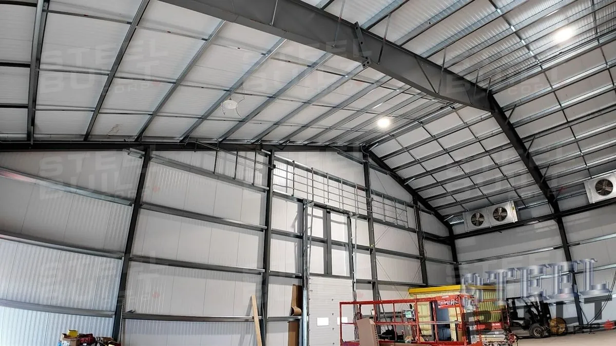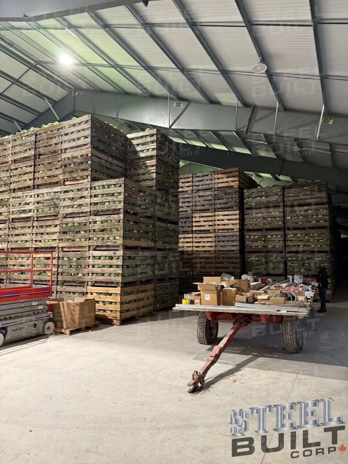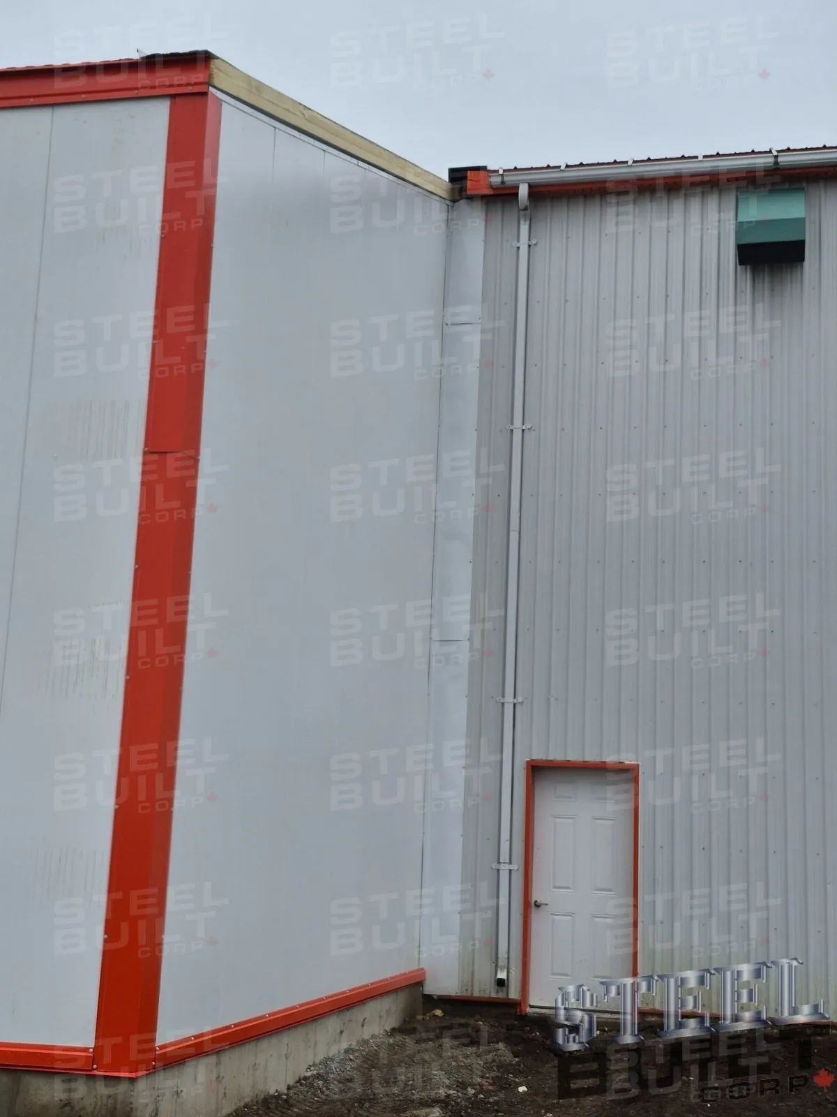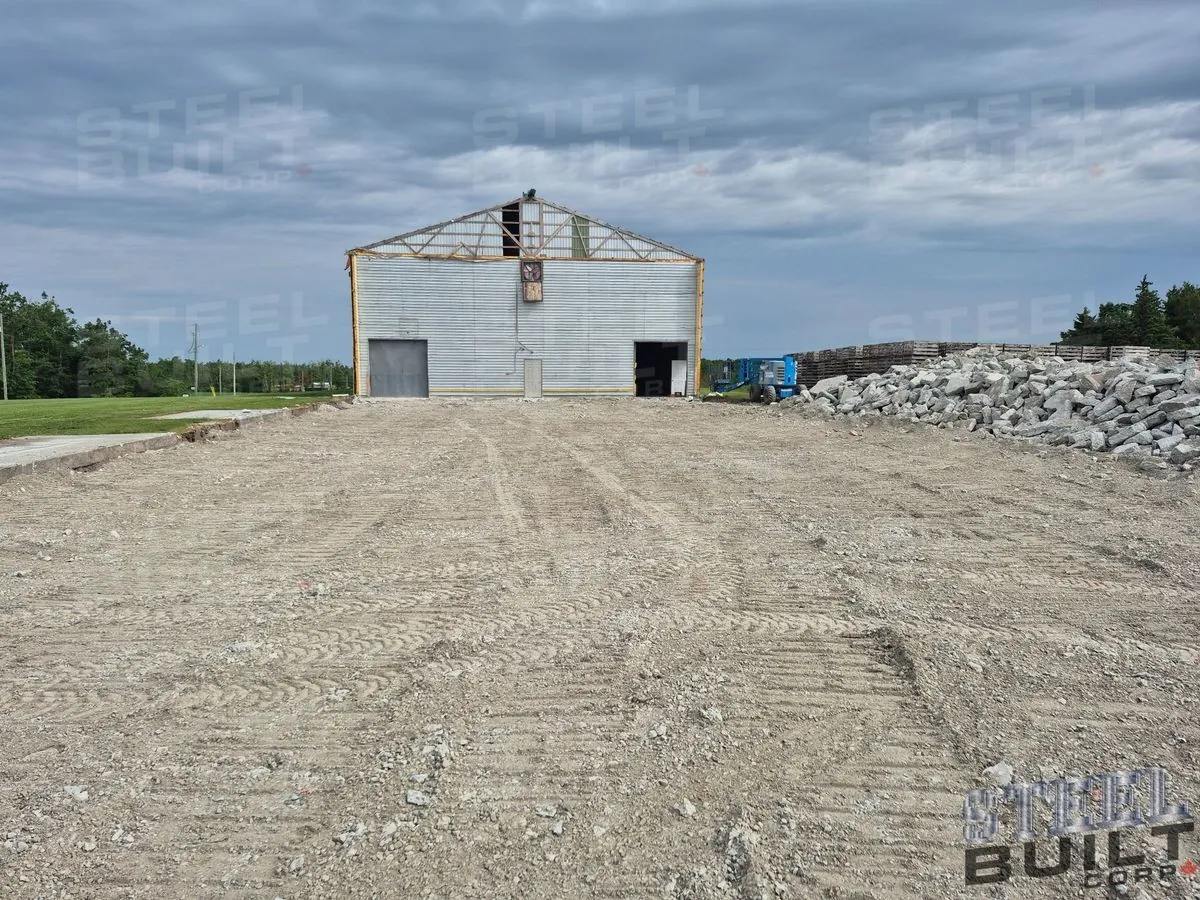 80x180x12/14 Agricultural Building in Woodville, Ontario, featuring a farm building addition made with insulated metal panels.