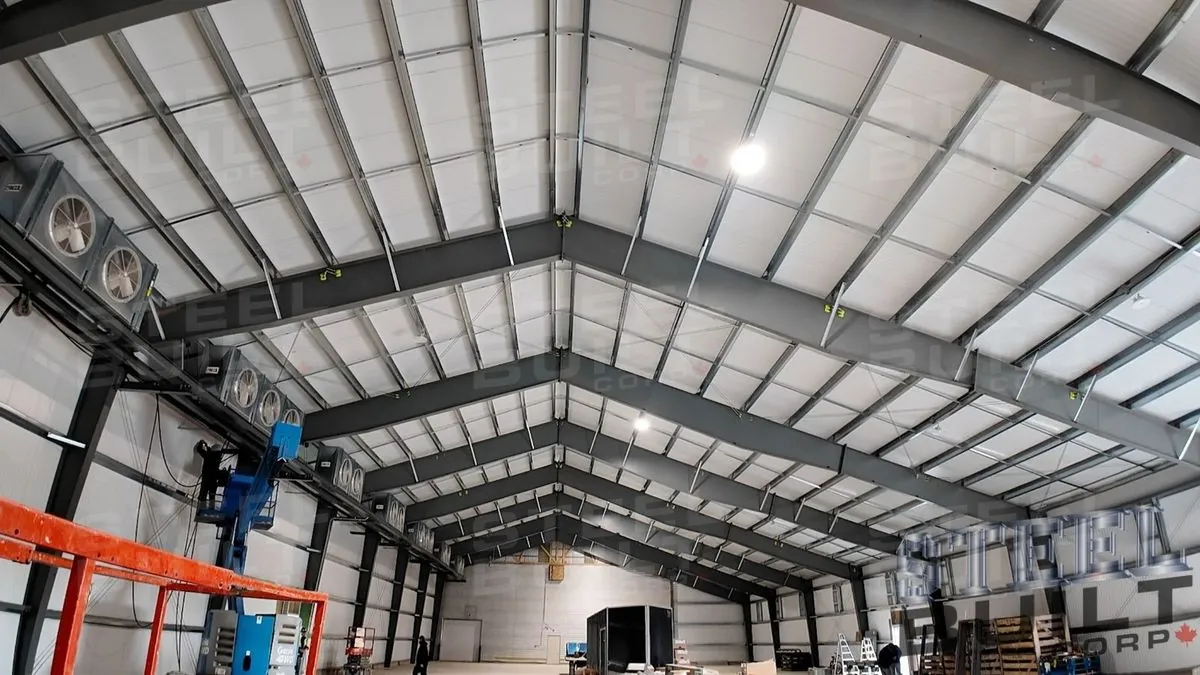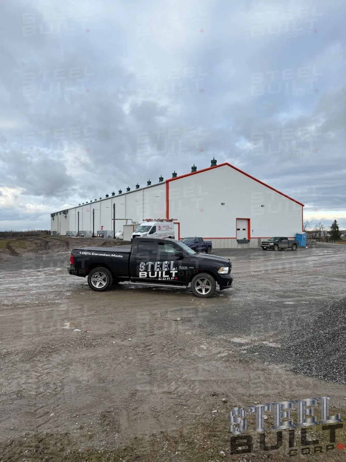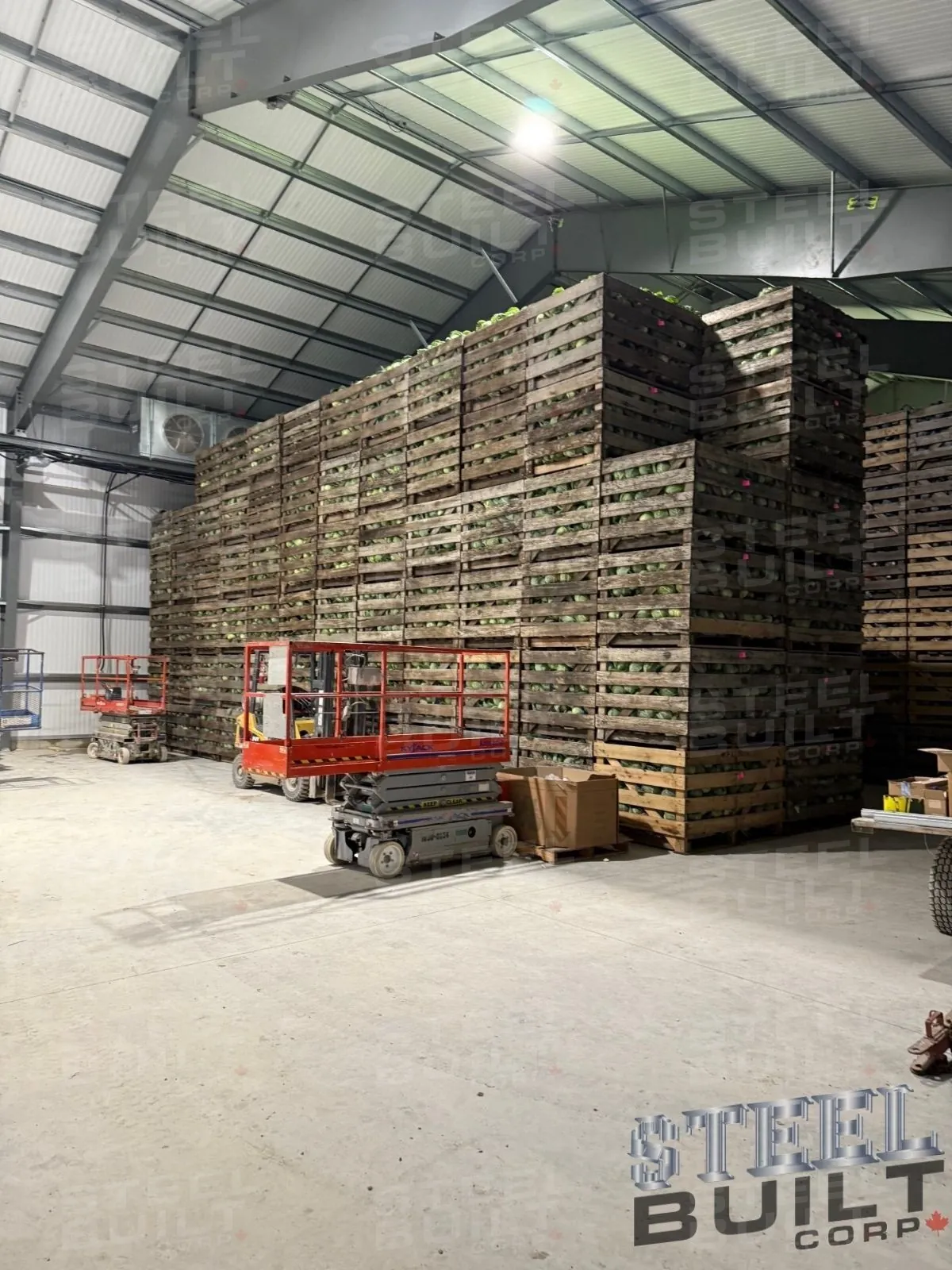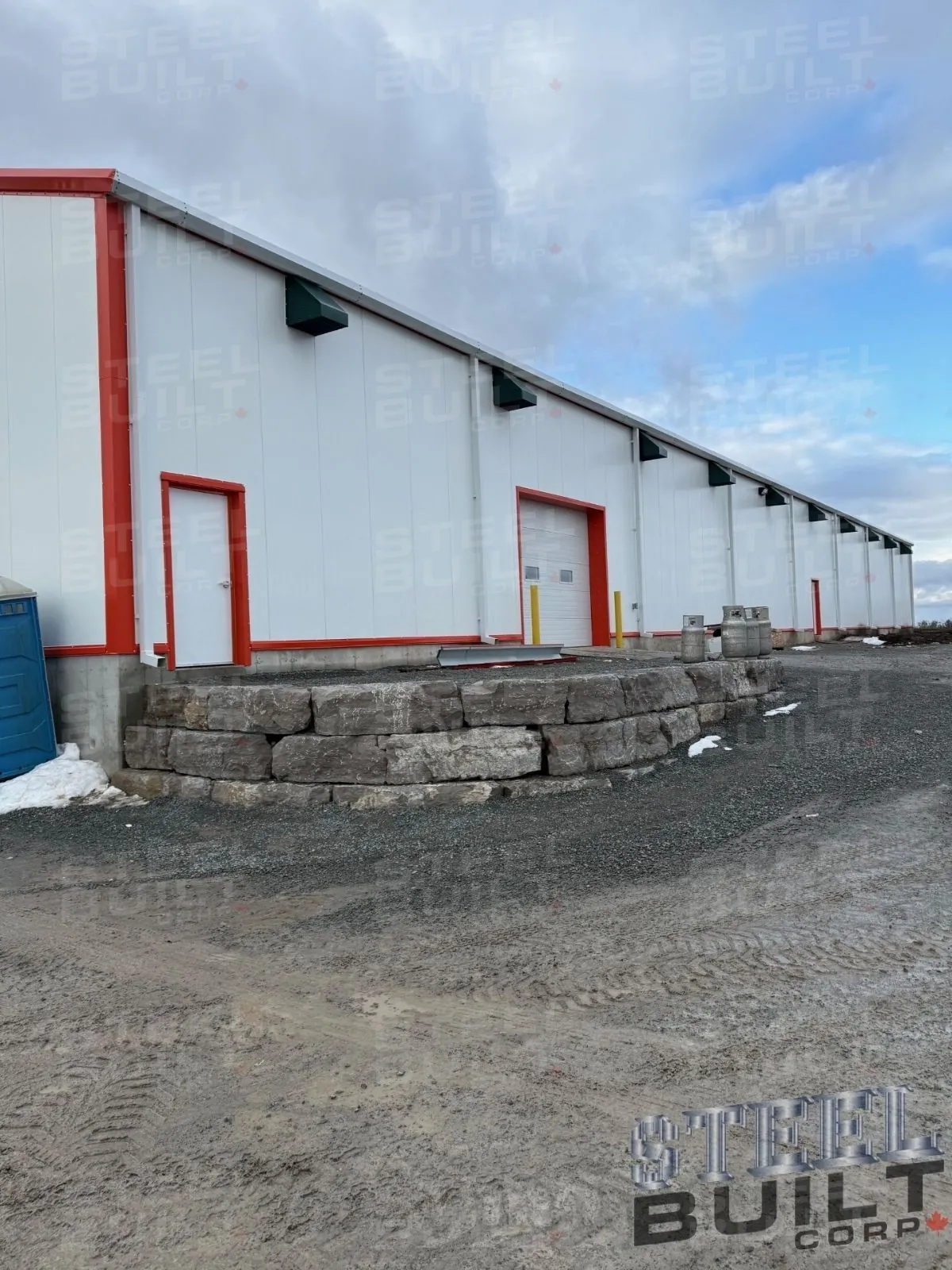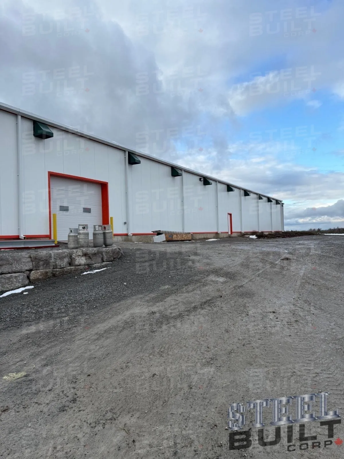 Completed80x180x12/14 Agricultural Building in Woodville, Ontario, featuring a farm building addition made with insulated metal panels.