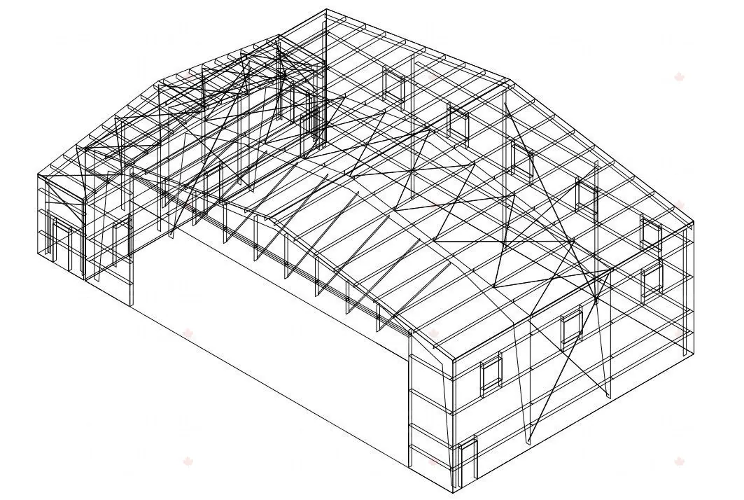 In ProgressSteelBuilt Construction was engaged to construct an airplane hangar for Waterloo International Airport in Breslau, ON. This project includes a breezeway linking the hangar to an existing building, ensuring structural integrity and avoiding unexpected material costs. The overall dimensions are 80'0"x52'6"x25'0" plus 52'6"x10'0"x15'0".