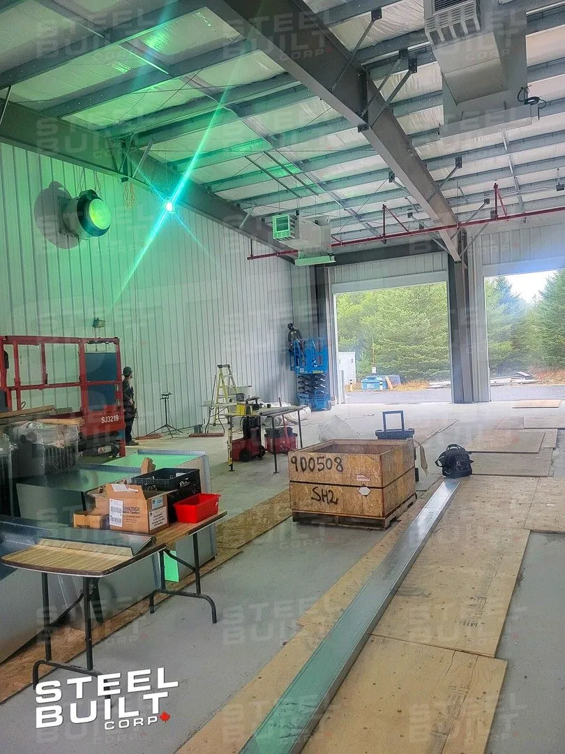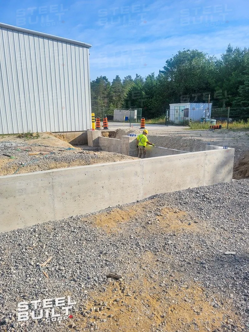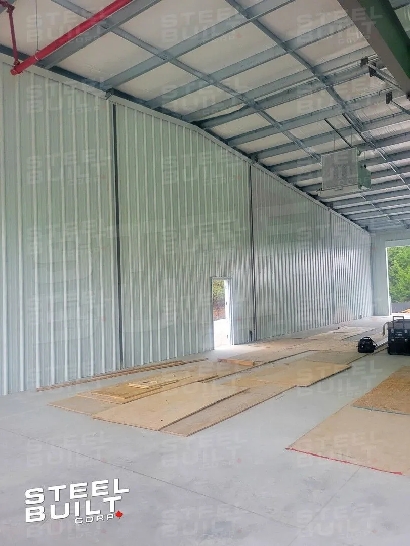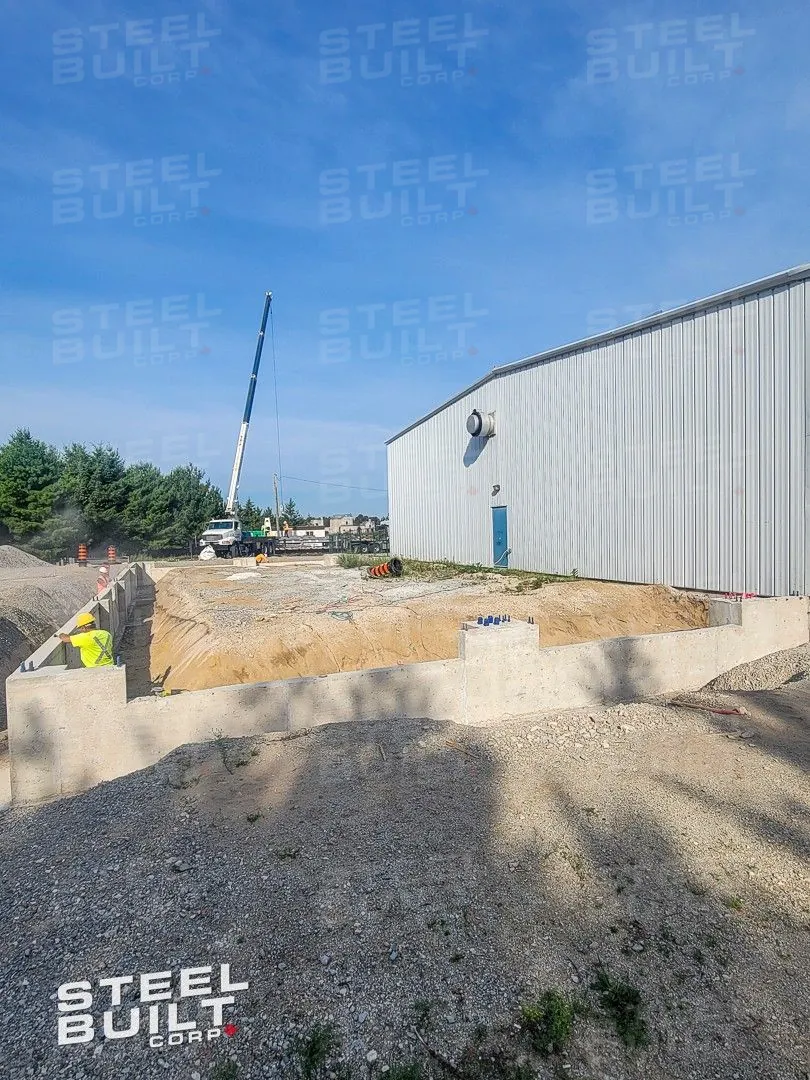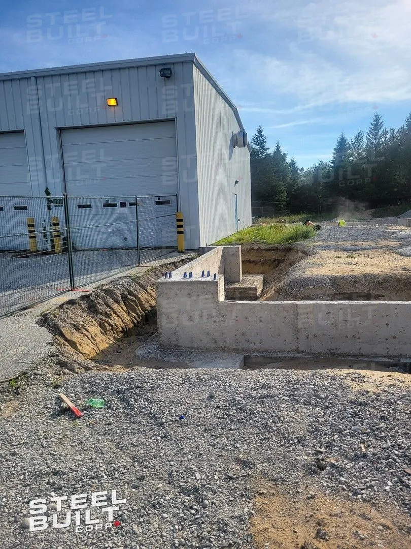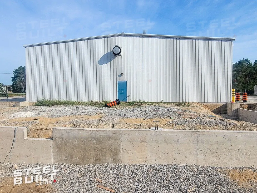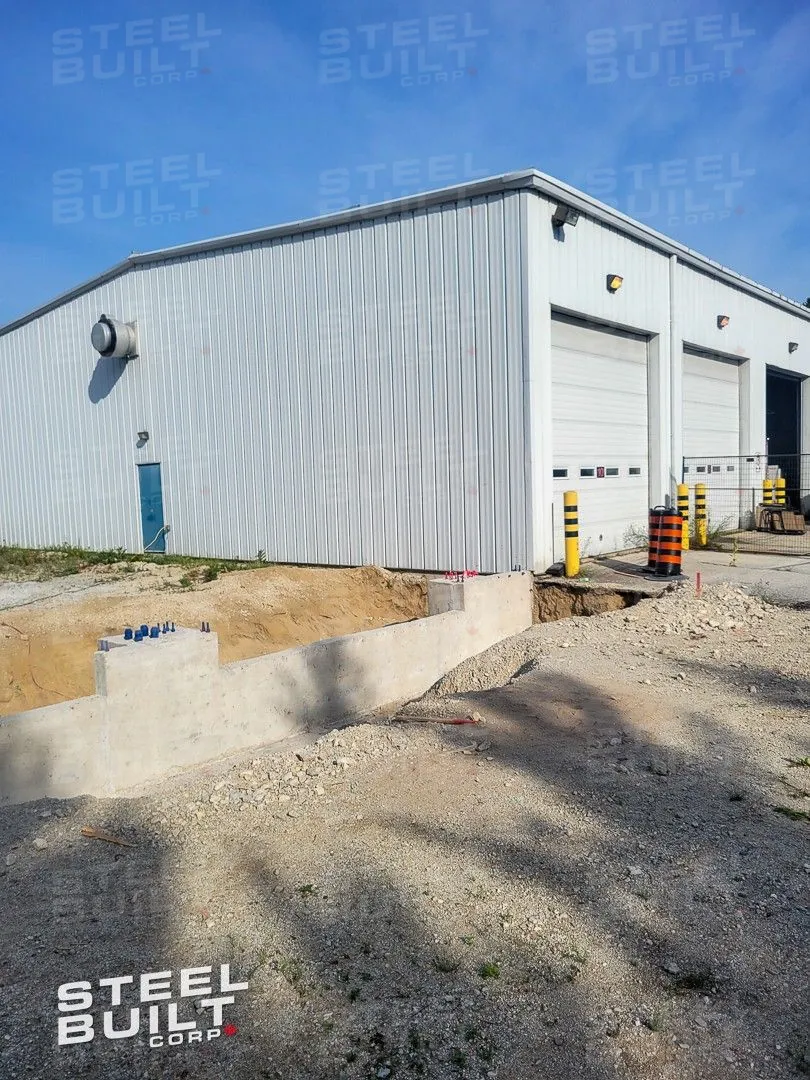 CompletedBuilding addition of the Fire Hall for Government Buildings in Borden, Ontario, featuring a 92x39x20/18 Monoslope design, white steel, and encompassing all phases from foundation to erecting.