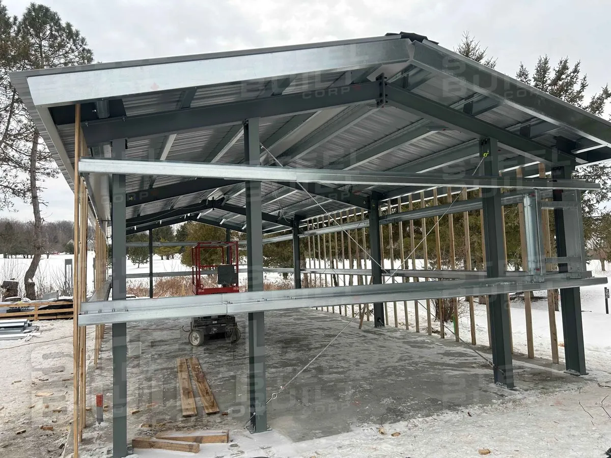 KING, ON Completed 25x50x10 commercial building in King, Ontario, designed for golf cart storage. Related Projects LAMBTON SHORES, ON 38x112x17, Commercial Building, Lambton Shores Ontario. NIAGARA ON THE LAKE, ON 24x40x10, Commercial Building, Niagara On The Lake, Ontario. NORTH BAY, ON. - 30x42x10 - Office 30x42x10, Commercial Building, North Bay, Ontario.