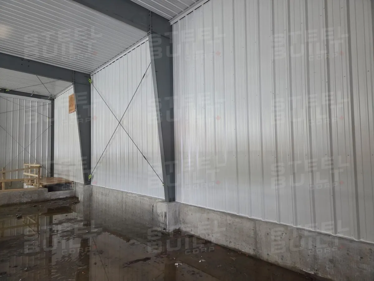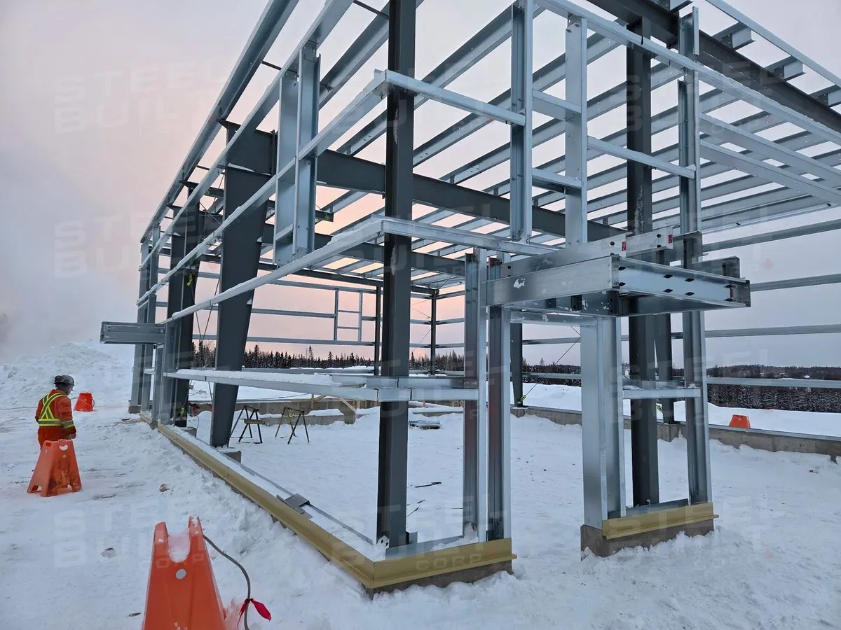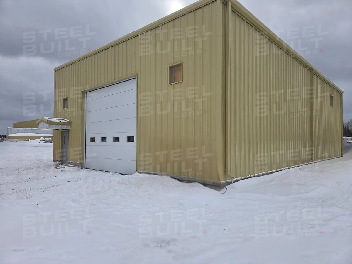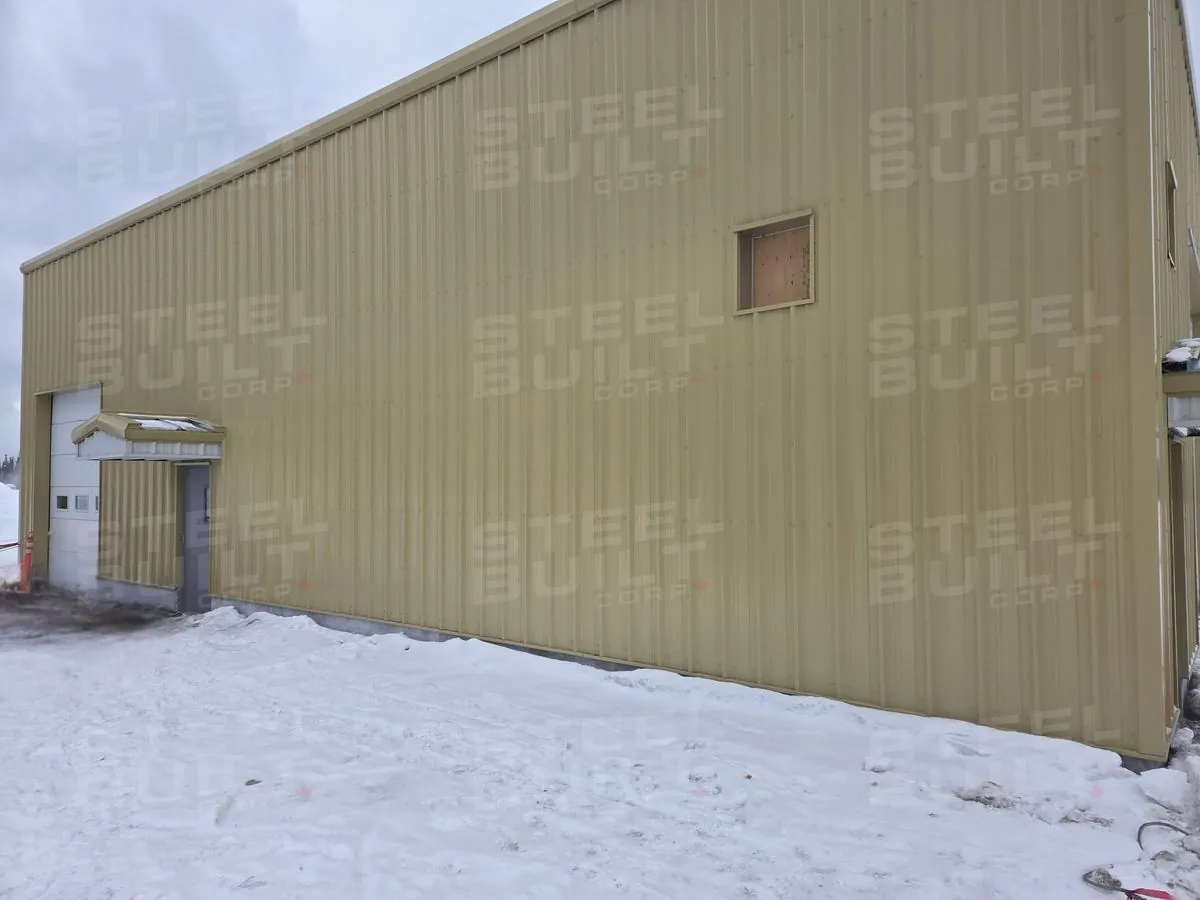 A 41x61x20 Mining Industrial Building in Kirkland Lake, Ontario, featuring a steel garage and a mine equipment wash building with a monoslope design.