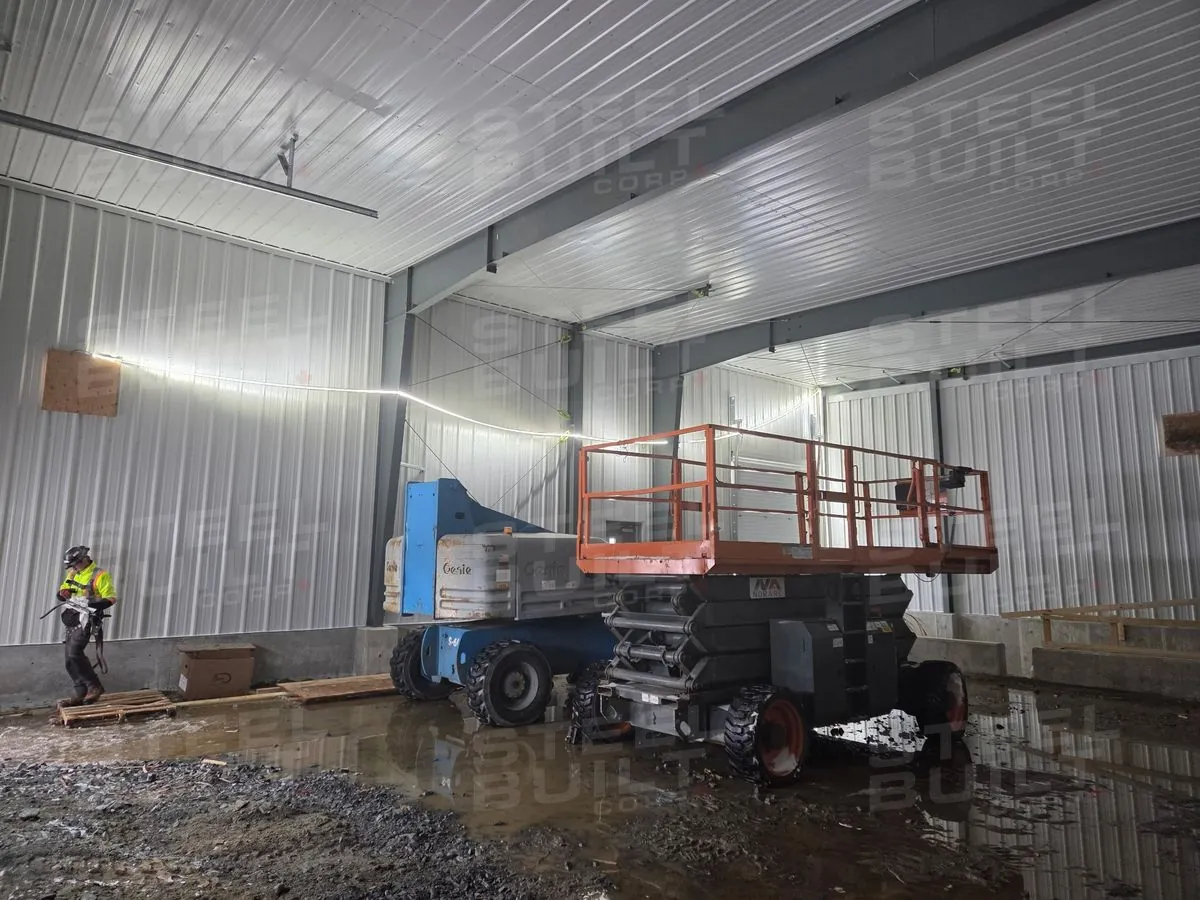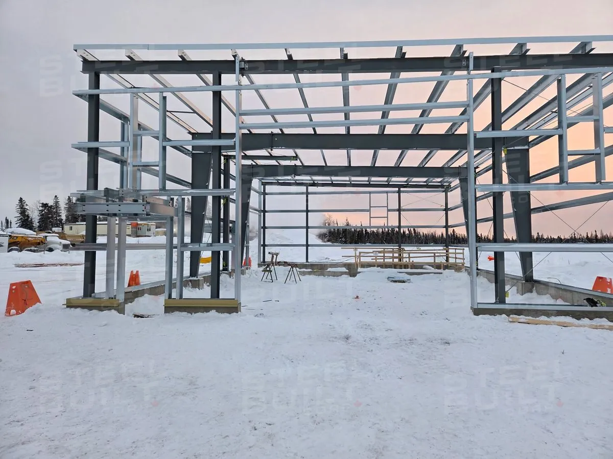 CompletedA 41x61x20 Mining Industrial Building in Kirkland Lake, Ontario, featuring a steel garage and a mine equipment wash building with a monoslope design.