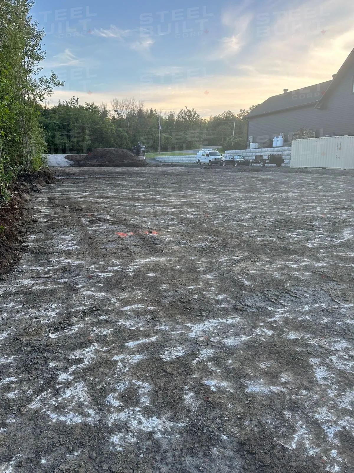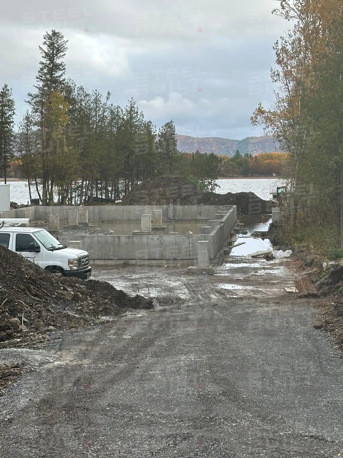 CompletedA 55x120x22, Barndominium in Dunrobin, Ontario, featuring a steel-built home and garage, currently under construction.