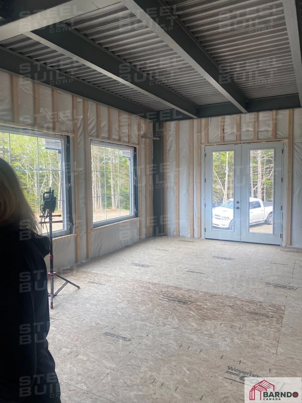 42x85x29/25 Barndo in Digby, Nova Scotia, a rural escape featuring a custom steel home designed for cottage and cabin living.