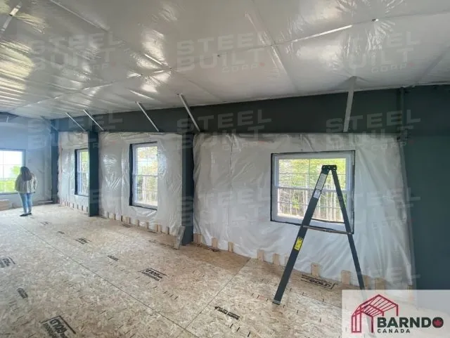 Completed42x85x29/25 Barndo in Digby, Nova Scotia, a rural escape featuring a custom steel home designed for cottage and cabin living.