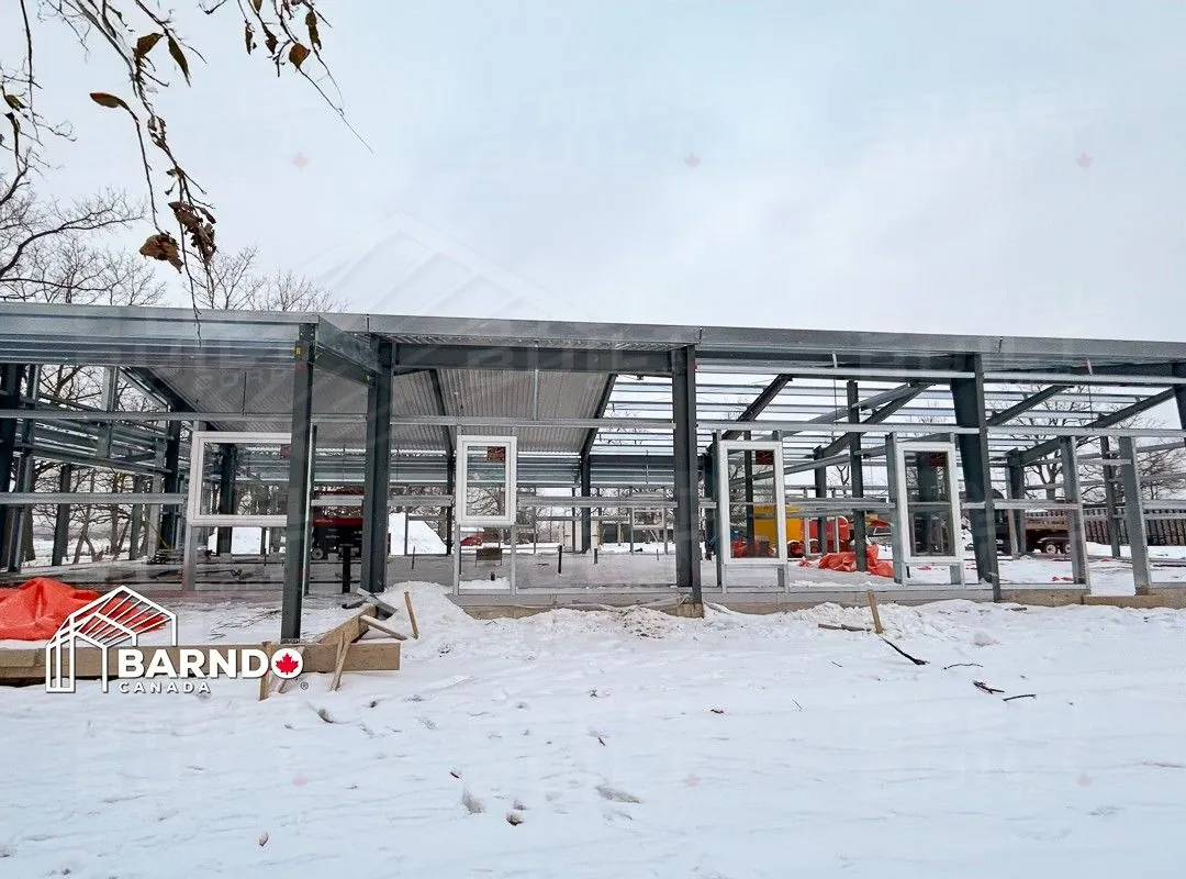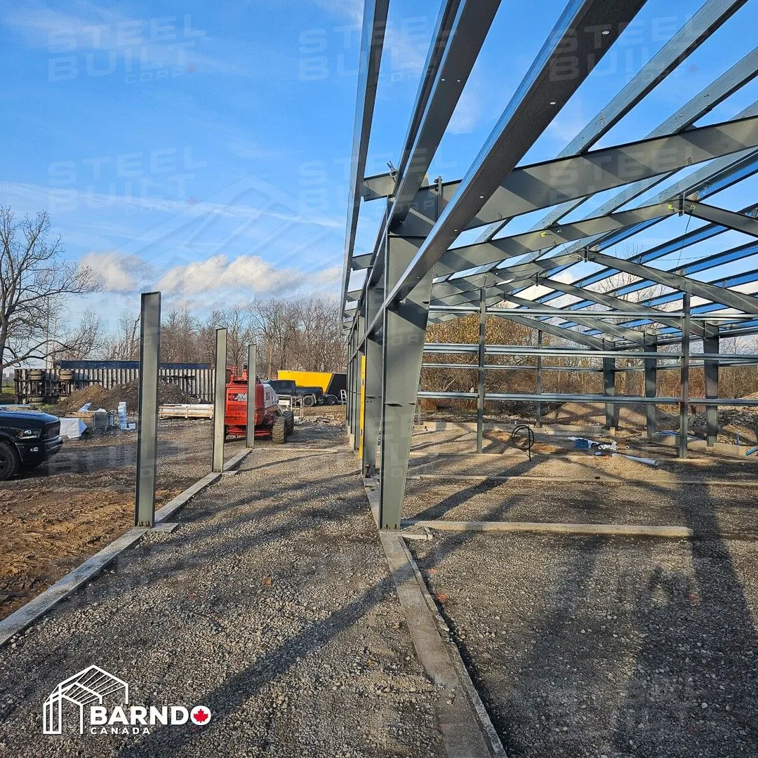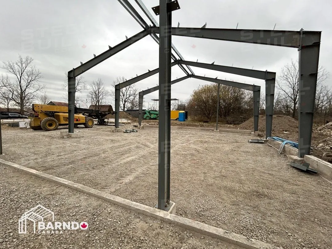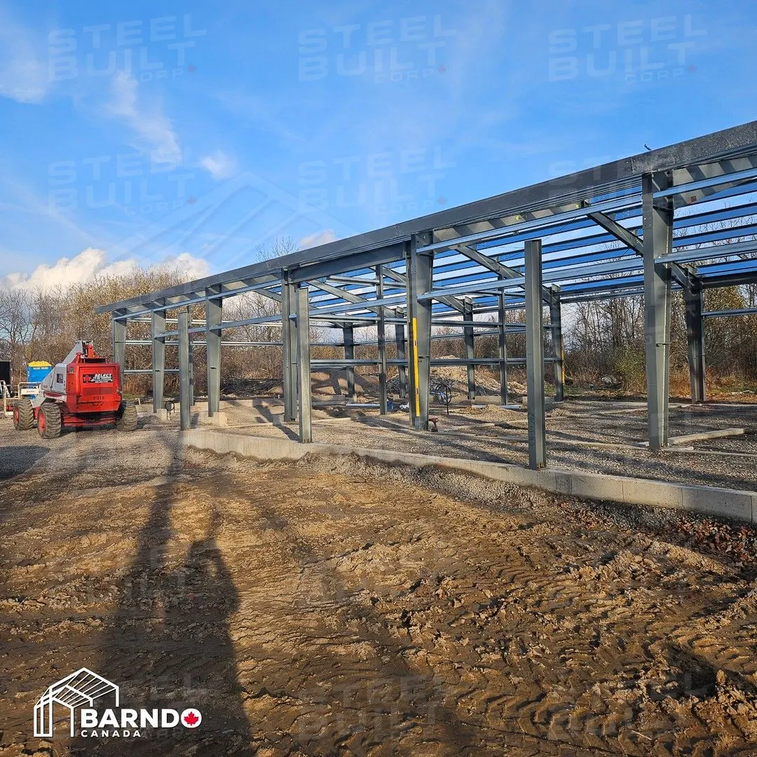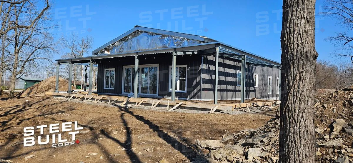 CompletedA 40x100x14 Barndominium in Fort Erie, Ontario, provides a rural escape dream home. This custom steel residence includes a cottage-like cabin with a loft, vaulted ceilings, and a wrap-around porch.