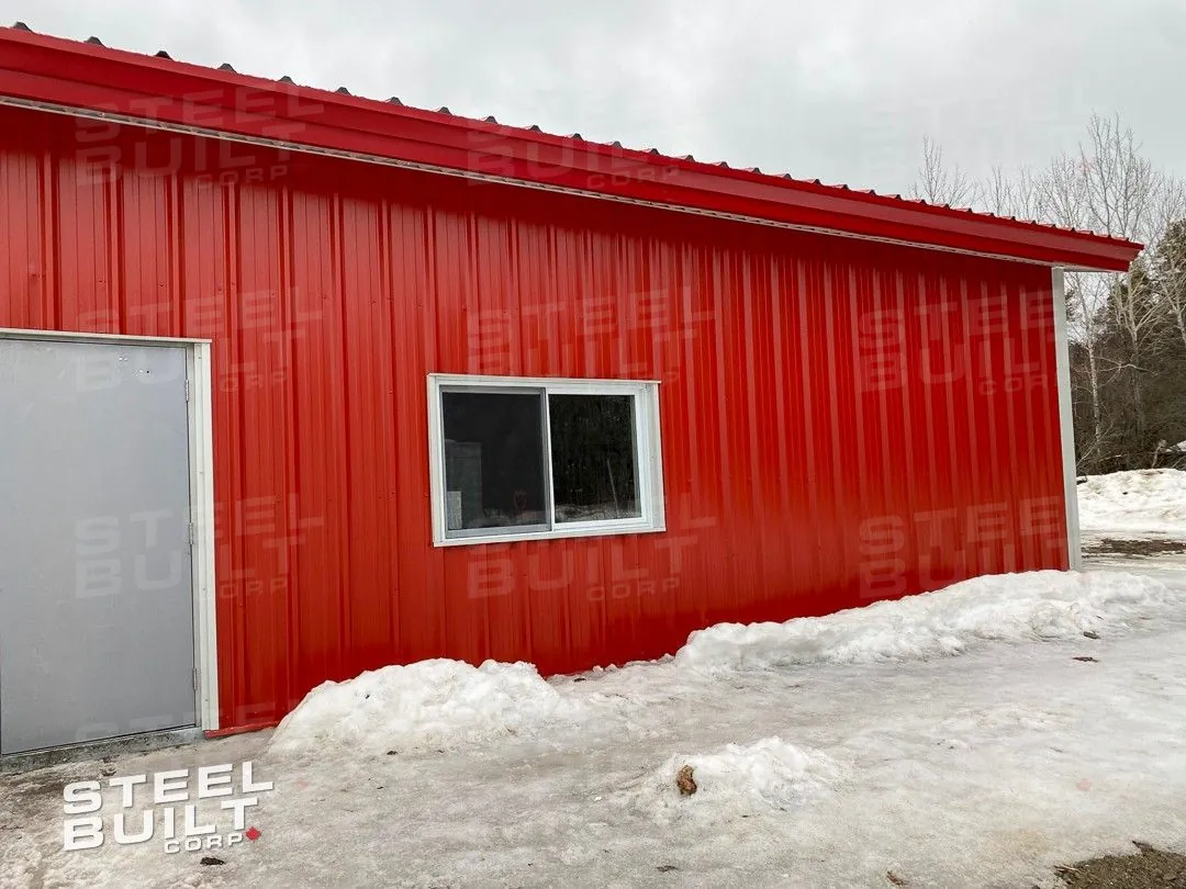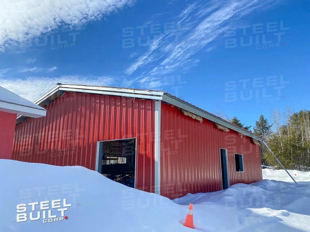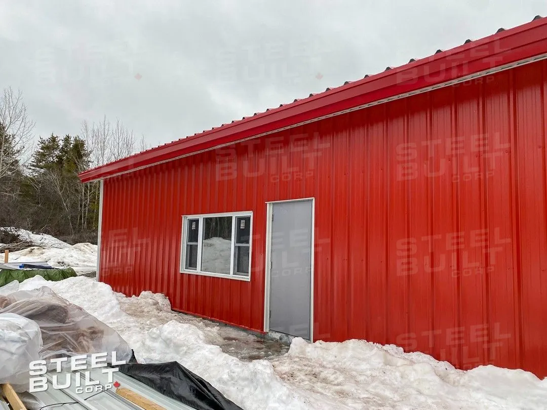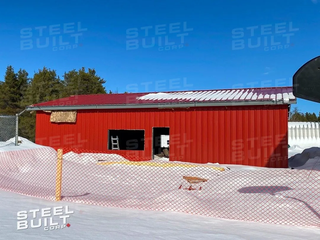 35x50x12 commercial building functioning as a community centre in Cartier, Ontario, featuring red steel with white trim.