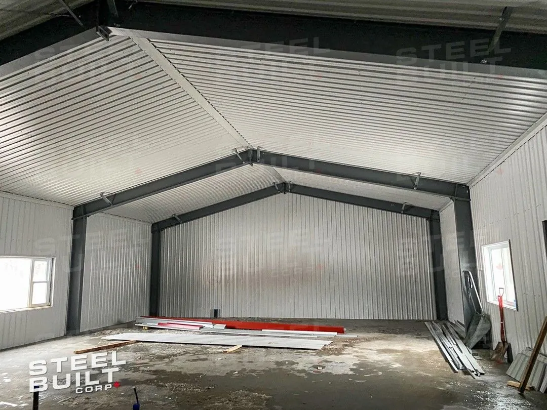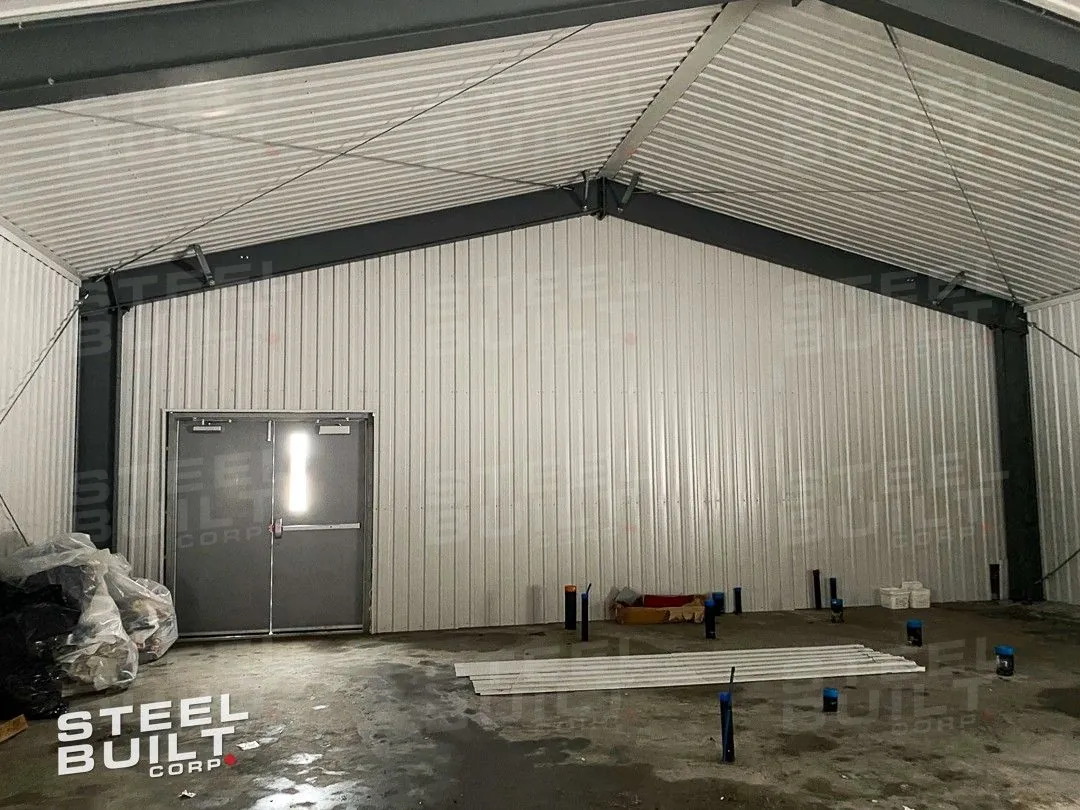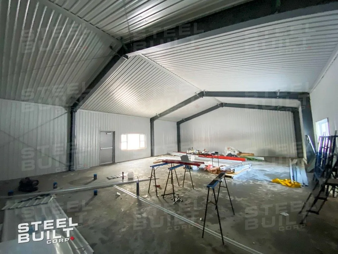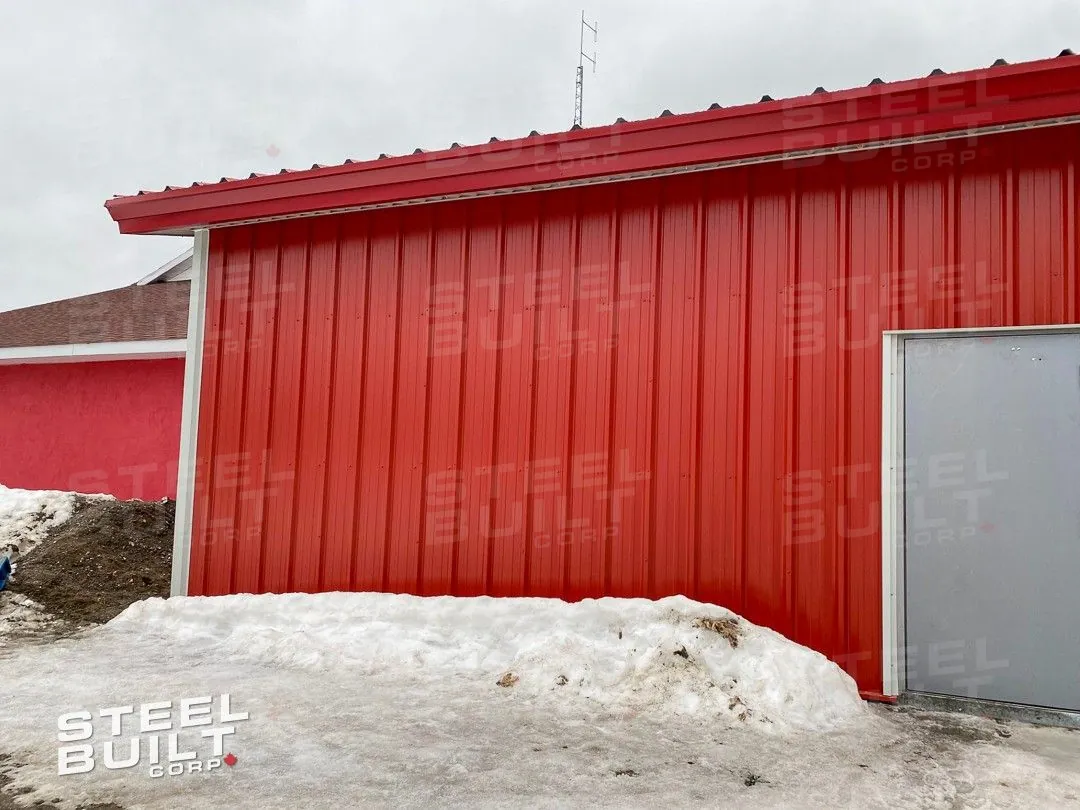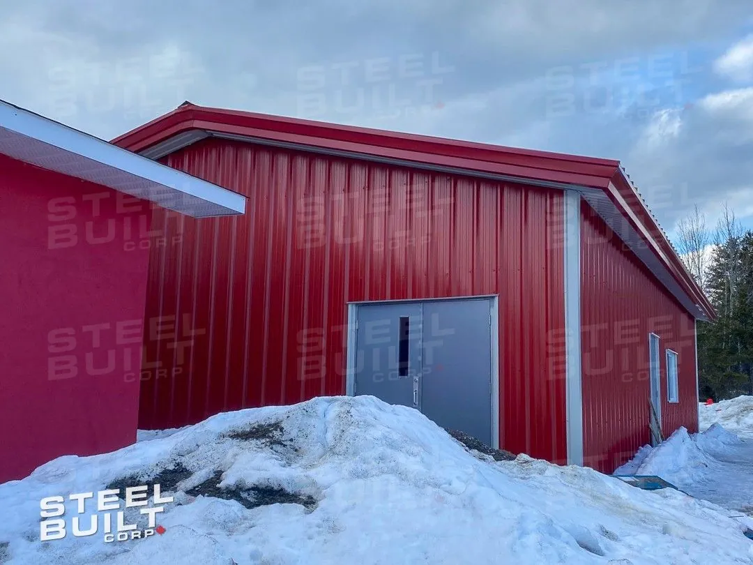 35x50x12 commercial building functioning as a community centre in Cartier, Ontario, featuring red steel with white trim.
