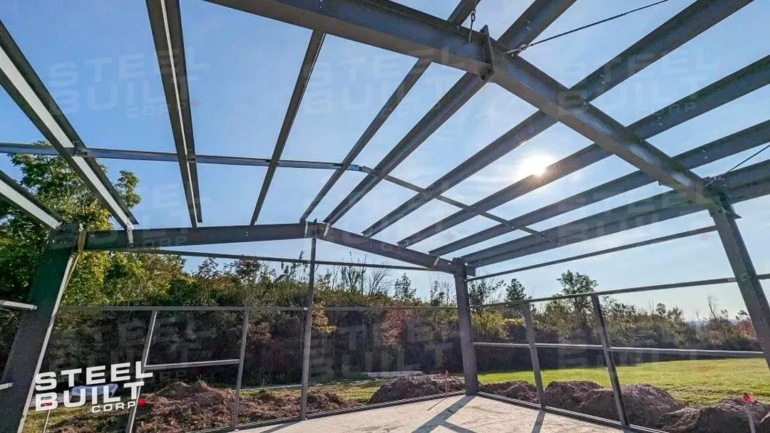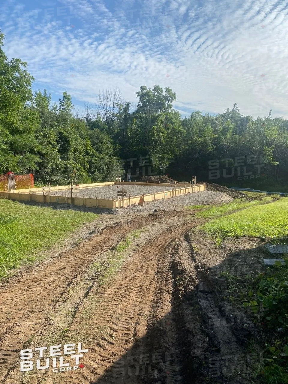 Completed30x40x12 industrial building in Georgetown, Ontario, designed as a woodworking workshop featuring automation equipment, charcoal trim, and a garage overhead door.